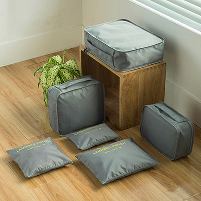 6PCS/Set Fashion Big Capacity Zipper Nylon Waterproof Women Travel Bag Luggage Organizer Packing Bag Cube Men Journey Bag
